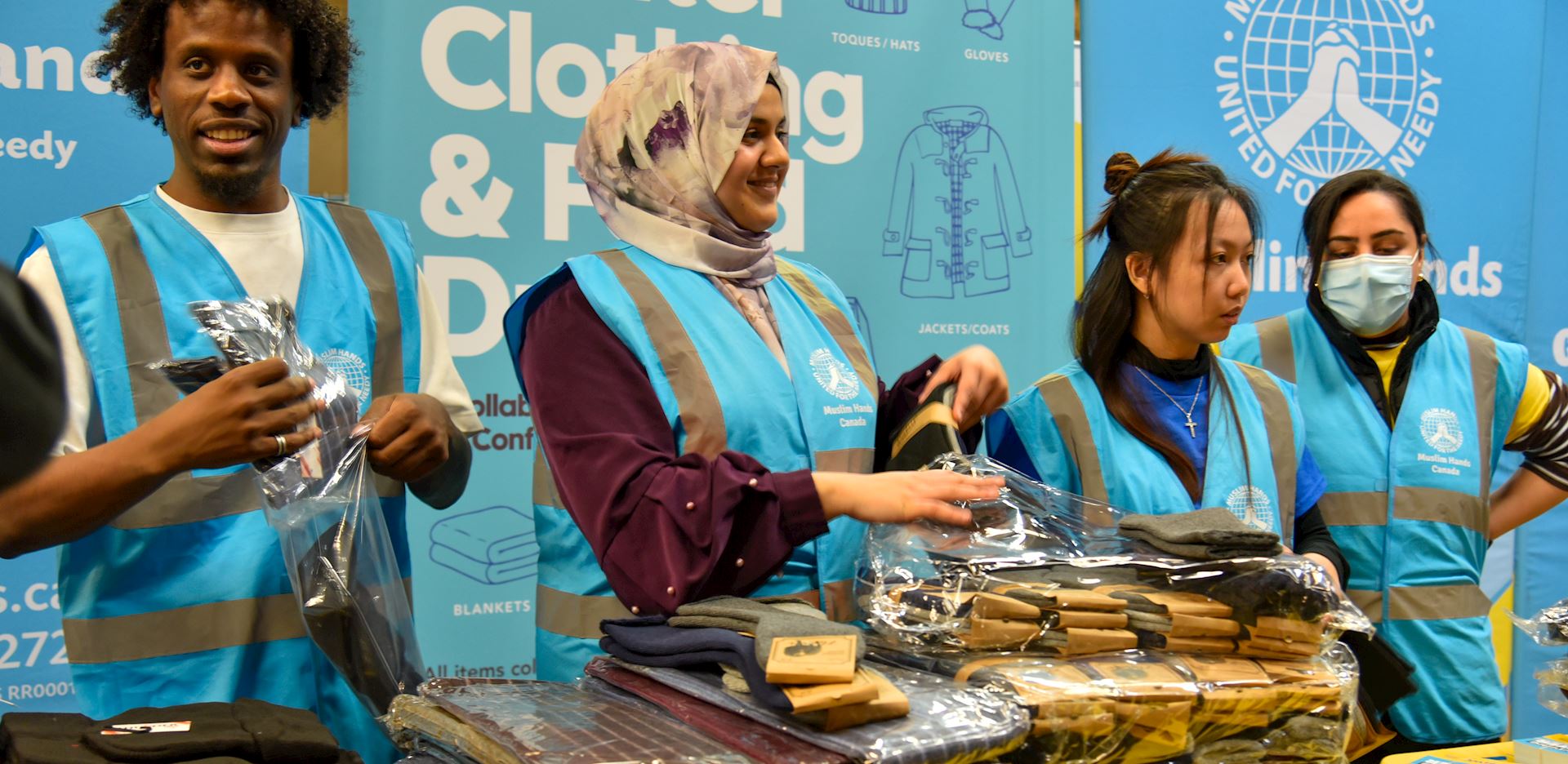 On Sunday, December 14, 500 hot meals were prepared on-site by Muslim Welfare Canada staff and volunteers, and we provided a dine-in service for vulnerable communities. 250 winter kits were also distributed during meal service. Each kit included an insulated jacket, hat, gloves, socks, and a scarf.